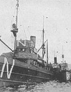 Mine Sweepers Simple fishing trawlers were often employed to cut the mine cables and then exploded with a rifle shot from the deck. The bows of those ships were heavily armored to protect against blast shrapnel. The U.S. navy developed a fleet of mine sweepers with more advanced mechanical methods. USS Eider |