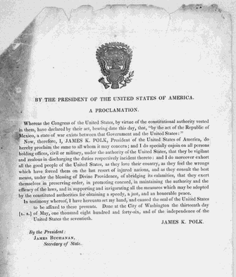 It was inevitable that a proclamation of war and Congressional approval followed. Congressman Lincoln had challenged the assertion of "American Soil". (see above)