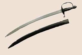 The British infantry sword worn, depending on the regiment, was known as the “Infantry Hanger”. It was forged with either a straight or slightly curved blade and was shorter than the cavalry sword. The infantry companies equipped with these weapons were an alternative to the bayonet. The Hessian sword was similarly constructed.