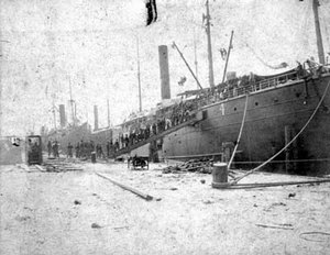 Tampa, Florida was chosen as the port of embarkation. It also was the heart of the most vociferous Cuban opposition to Spanish rule. A huge invasion fleet assembled for the six day trip over 200 miles of placid sea which, unpredictably, became extremely rough at the landing site on Cuba's south eastern coast.