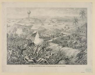 Lt. General Nelson A. Miles met his troops in Guanica. One of his earliest acts was to issue a proclamation to the population stating that his army were "liberators" and not "conquerors".