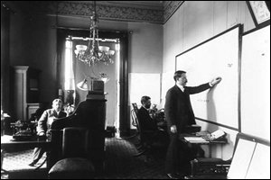 America was ready to flex its muscles. Power generated from Niagara Falls was electrifying the country. The first Ford's were rolling off the assembly line. The invention of lino type increased the numbers of newspapers that could be printed to satisfy mass readership. Newspapers employed staffs of artist-reporters whose lurid sketches and paintings were front page news.