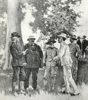 ![]() Americans moving to Las Guasimas front. Harper's Pictorial History of the War with Spain, Vol. II, Major General Joseph Wheeler |