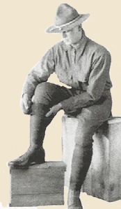 Trousers were tapered and followed the olive drab appearance. Bound about the lower leg was the puttee which saw much service, This required wrapping the material as though it were a bandage. The olive drab sweater and campaign hat completed most of the soldiers kit.
