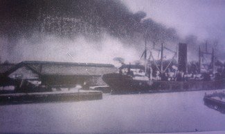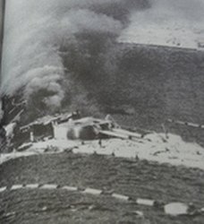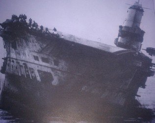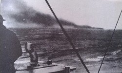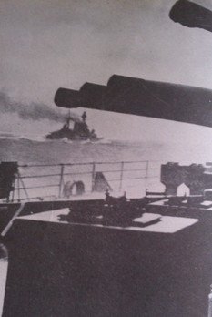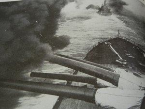 ![]() Above: Sinking of Bismark as seen from the deck H.M.S. Dorsetshire whose torpedoes then sunk the Bismark. |